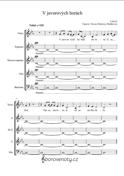 | Popis | V Javorových horách je oblíbená skladba Molydurů, ale také bohužel těžká. Střední část je dost rychlá a rytmická a ve skladbě se mění tempo. Dá se zpívat acapella i s doprovodem